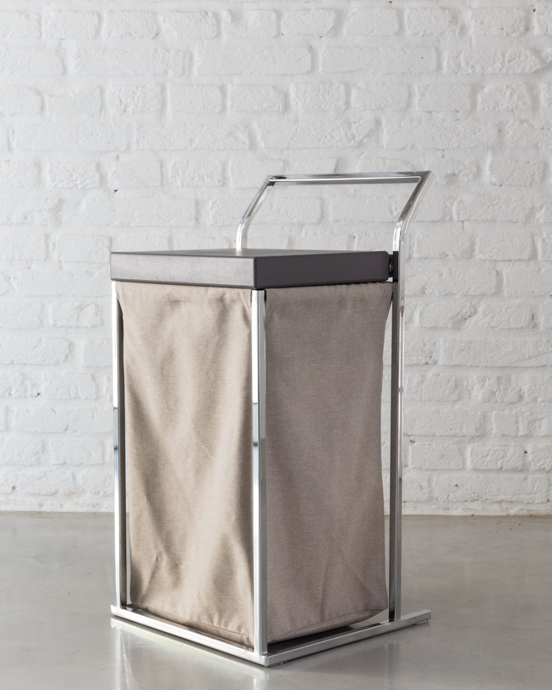 Quadra Geelli è un portabiancheria realizzato in poliuretano integrale con sacca in cotone e struttura in ferro cromato o verniciato.